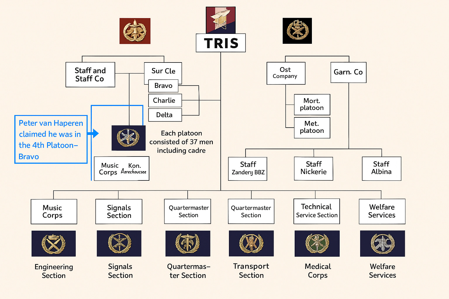 However, attempts to verify van Haperen's own military service through direct outreach to TRIS veterans have yielded skeptical responses. Recent correspondence with Jan Oprins, who served with the 2nd platoon A-company (class 70-5) from 1970-1971, revealed that neither 'Peter van Haperen' nor 'Dick Staphorst' were names recognized by the TRIS veterans he contacted.