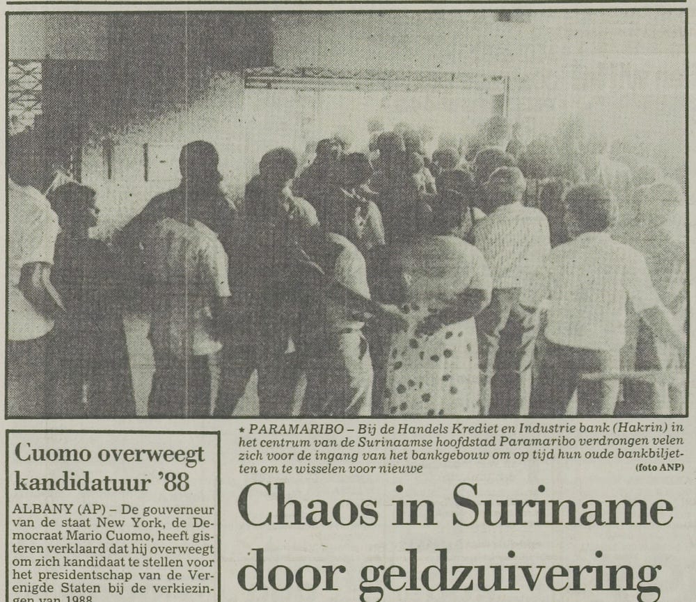 By now, the Jungle Commandos had gotten wind of Bouterse's plans, and through their network of sympathizers and accomplices in Holland, the U.S., and both Guianas, they hatched a plan of their own. Over the weekend, new classified ads appeared in the Netherlands, offering to buy soon-to-be-worthless guilders from ex-pats who'd left the country a decade prior for pennies on the dollar.